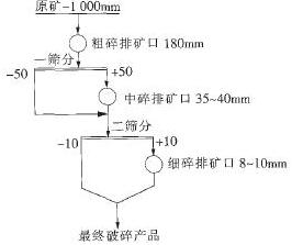 总的来说,该选厂通过改造碎矿流程,增加洗矿工艺,加强筛分,,在不增加破碎设备基础上大大提高了破碎生产能力,满足了磨、浮、重选别流程需要,其效果非常明显,保证了碎矿粒度,节省了投资,为企业创造了较好的经济效益。